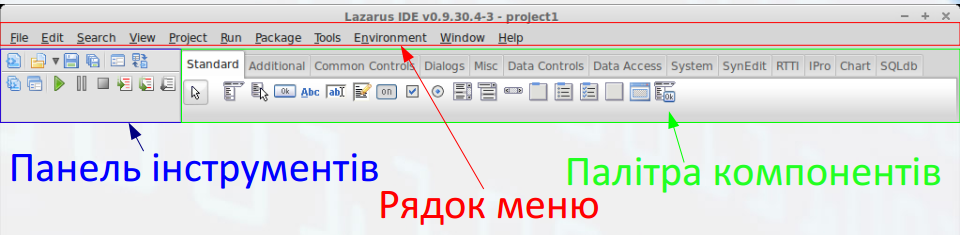 5. Основні інструменти середовища розробки Lazarus: